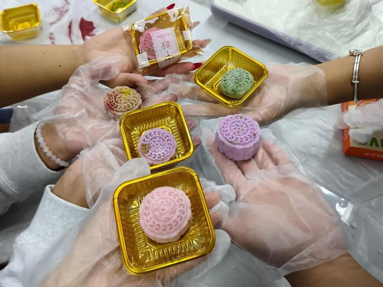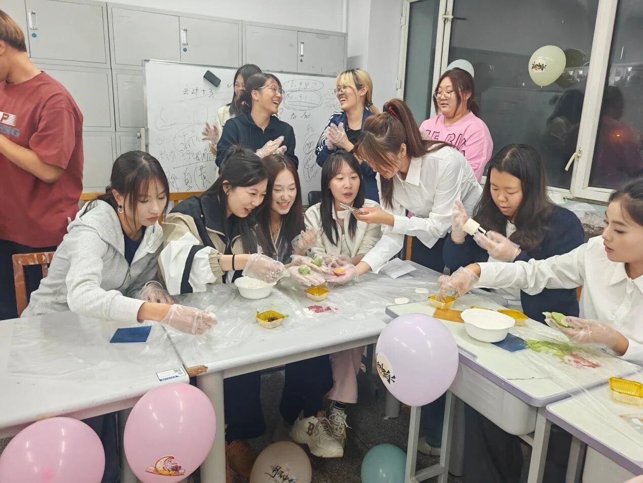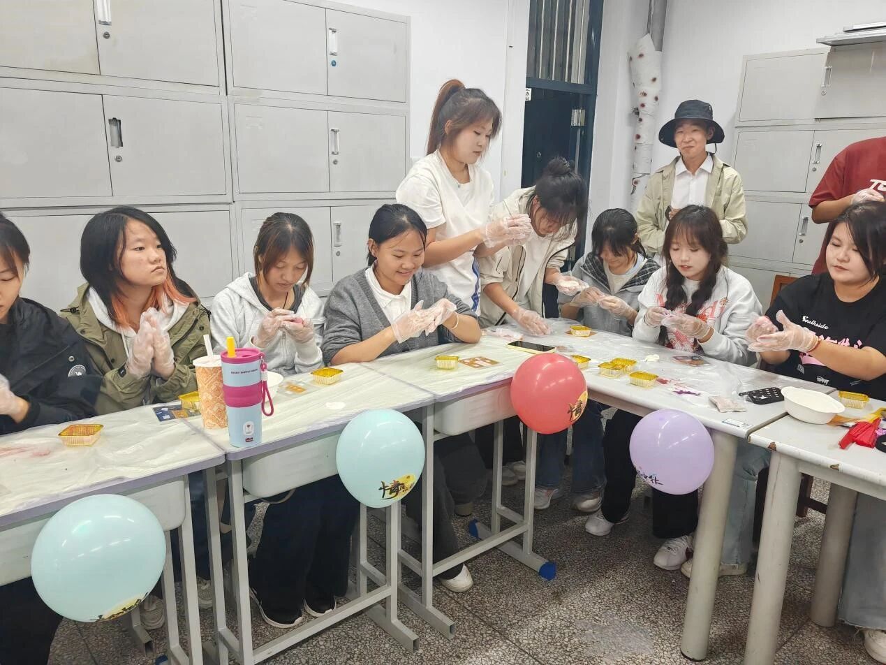 表演落幕,最受欢迎的手作月饼环节开启。工作人员早已备齐馅料与模具,同学们围坐在一起,跟着学习揉面、包馅、压模。有人的月饼“形态各异”却满是创意,有人的冰皮月饼精致得像艺术品。当亲手做的月饼新鲜出炉,鼻尖萦绕着香甜,心底涌起的成就感与幸福感,是任何现成月饼都无法替代的。大家互相分享“作品”,笑声与甜香交织,这便是团圆最真实的味道。