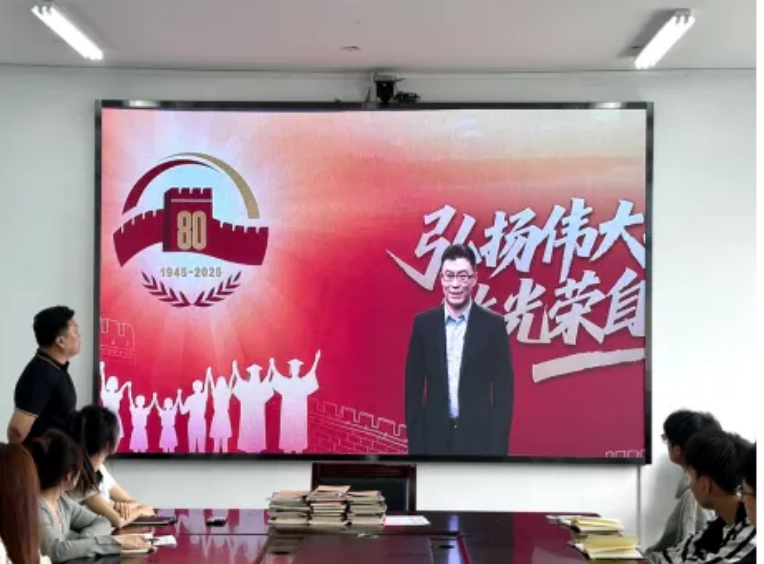 会议尾声,全体人员共同观看“全国大中小学生同上一堂思政大课”专题视频。此次观影活动以纪念中国人民抗日战争暨世界反法西斯战争胜利80周年为核心,通过鲜活的历史叙事与深刻的思想阐释,将宏大的历史记忆与青年的时代使命紧密相连。影像中蕴含的精神力量,进一步夯实了在场青年“勿忘国耻、珍爱和平”的认知根基,也为本次理论学习注入了更为直观、深刻的实践指引,让“立足时代、担当使命”的信念在沉浸式学习中愈发坚定。