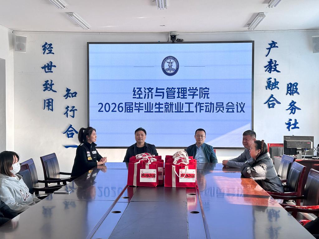 为帮助2026届毕业生了解最新就业政策与市场形势,增强就业主动性、树立务实择业观,分享实用求职技巧与规划思路,2025年11月28日,经济与管理学院于文科楼430会议室举行2026届毕业生就业工作动员会议,学院党委书记朱柏学、院长路科、党委副书记常大治出席会议,会议由辅导员张文馨主持。